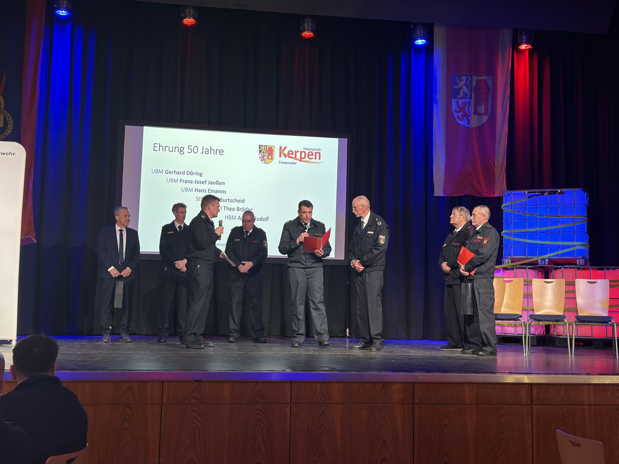➡️ Eine ganz besondere Ehrung wurde Hans Burtscheid zuteil: Für 50 Jahre Feuerwehrdienst erhielt er die Sonderauszeichnung des Verbandes der Feuerwehren in Nordrhein-Westfalen in Gold. Darüber hinaus wurde ihm als Überraschung das Deutsche Feuerwehr-Ehrenkreuz in Gold des Deutschen Feuerwehrverbandes verliehen, eine der höchsten Auszeichnungen im deutschen Feuerwehrwesen.