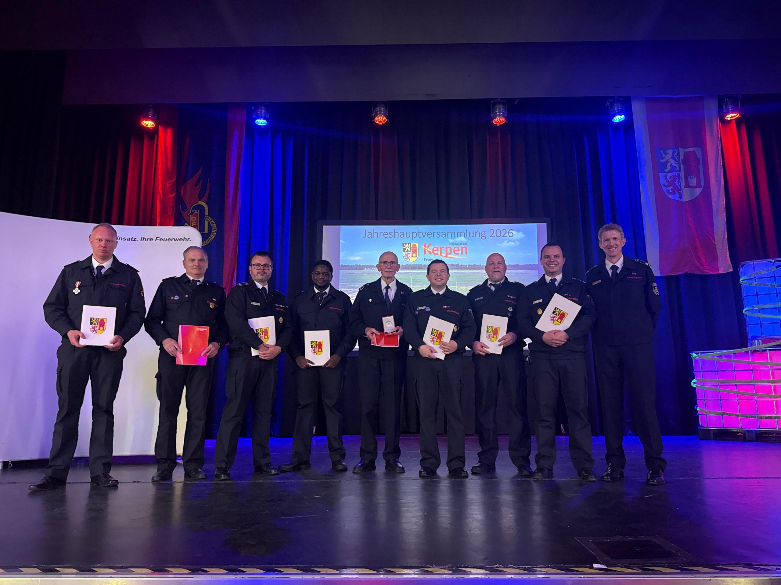 Am 21. März 2026 fand die Jahreshauptversammlung der Feuerwehr Kerpen in der Erfthalle in Türnich statt. Im feierlichen Rahmen wurde auf ein ereignisreiches Jahr 2025 zurückgeblickt.